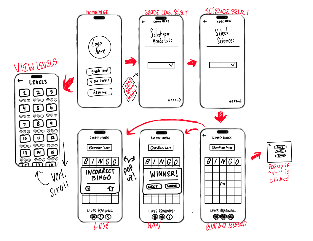 ❋ GoalThe goal of BIT-QUEST Bingo is to make learning science interactive and enjoyable for students. Key objectives include creating an intuitive and accessible interface, presenting content in a playful, game-like format, and reinforcing knowledge through visual cues and challenge-based gameplay.